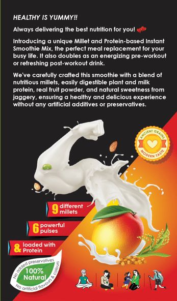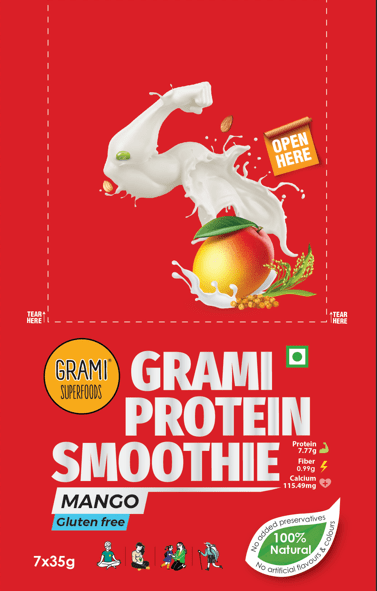 - Grami Mango Protein Smoothie is a gluten-free, high-protein drink made with multigrain millets, pea protein, and real mango. Ideal for fitness routines, busy lifestyles, or quick nutrition.