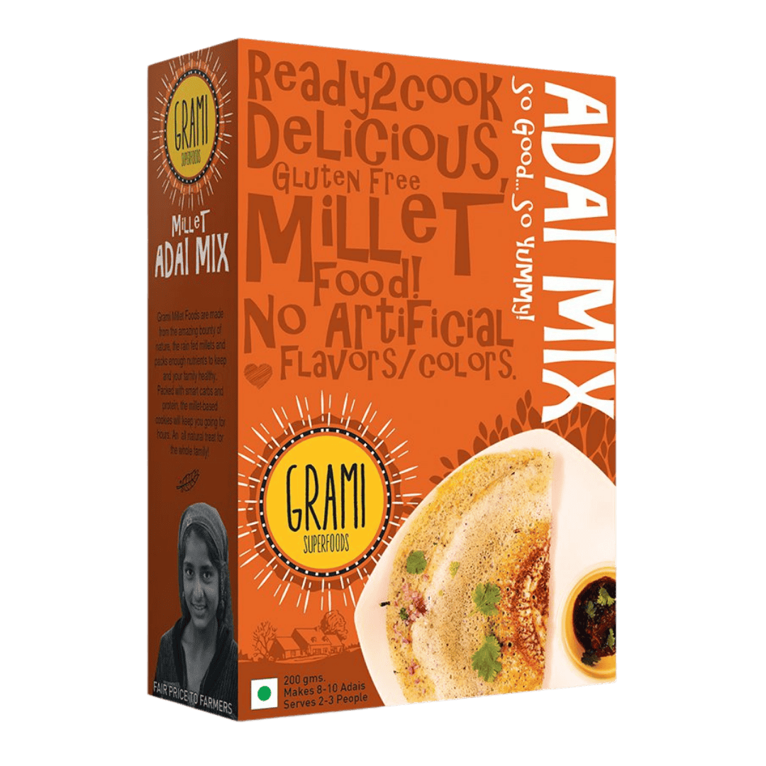 Millet Adai Mix 200g is a gluten-free, vegan, and diabetic-friendly ready-to-cook meal. Made with organic millets, it’s a preservative-free South Indian breakfast ready in 30 minutes.