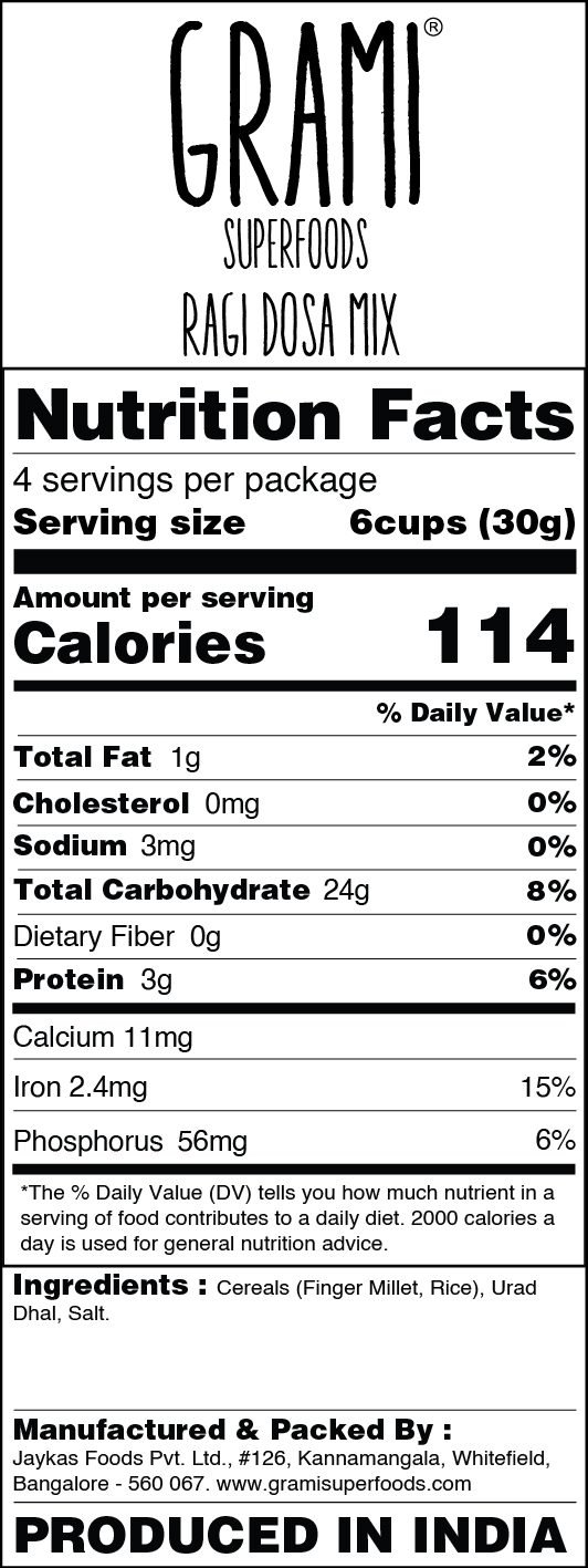 - Ragi Dosa Mix 200g is a millet breakfast made from organic ragi and natural ingredients. High in calcium, iron, and fiber. Gluten-free, vegan, and diabetic-friendly.