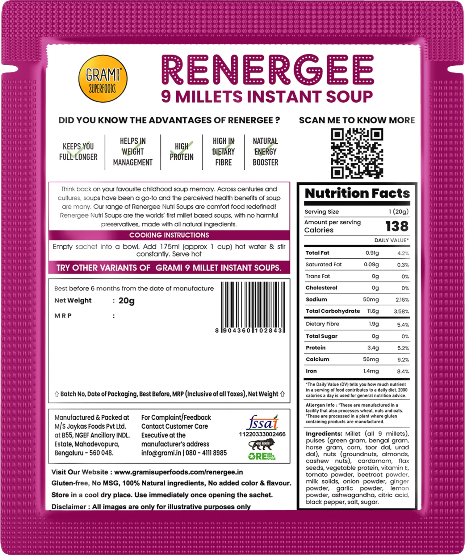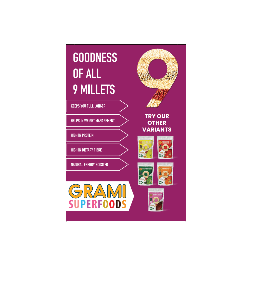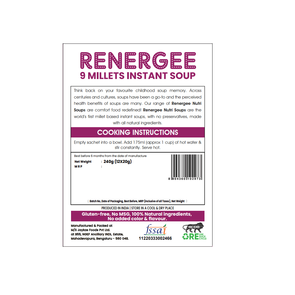 Think back on your favourite childhood soup memory. Across centuries and cultures, soups have been a go-to and the perceived health benefits of soup are many. Our range of Renergee Nutri Soups are comfort food redefined! Renergee Nutri Soups are the worlds’ first millet based soups, with no harmful preservatives, made with all natural ingredients.