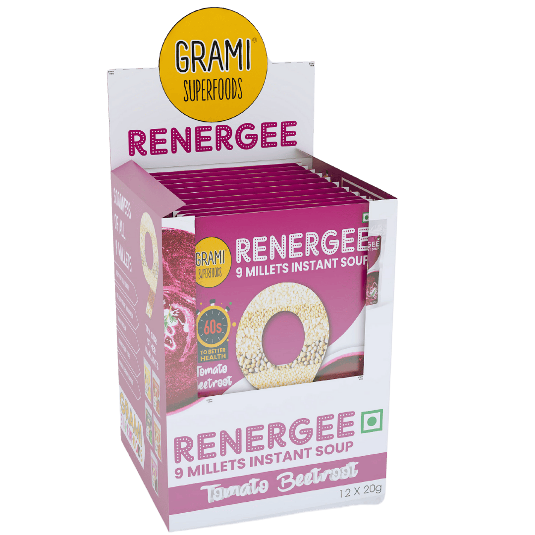 Renergee Instant 9 Millet Tomato Beetroot Soup is a plant-based, gluten-free soup crafted for modern wellness. This unique soup blends the nutrition of 9 millets with the antioxidant power of tomato and beetroot, offering a wholesome, vegan-friendly meal option.